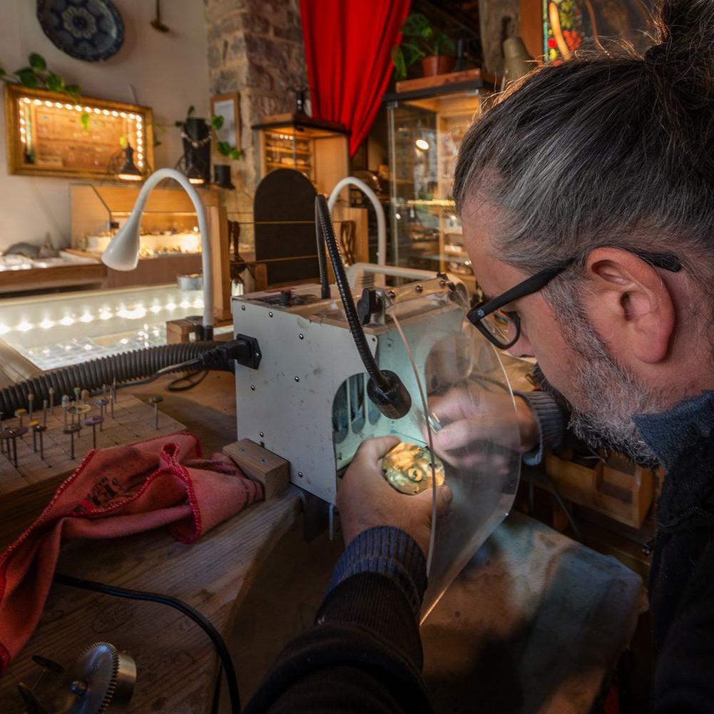 The jewelry workshop is managed by Simon-Pierre Delord. It is located in Cordes-sur-Ciel, in the Tarn near Albi. It is in this workshop that the parts of ALB watches are sketched. In addition to having all the equipment necessary for lost wax casting, the workshop has the equipment necessary for 3D printing as well as cutting precious stones.
